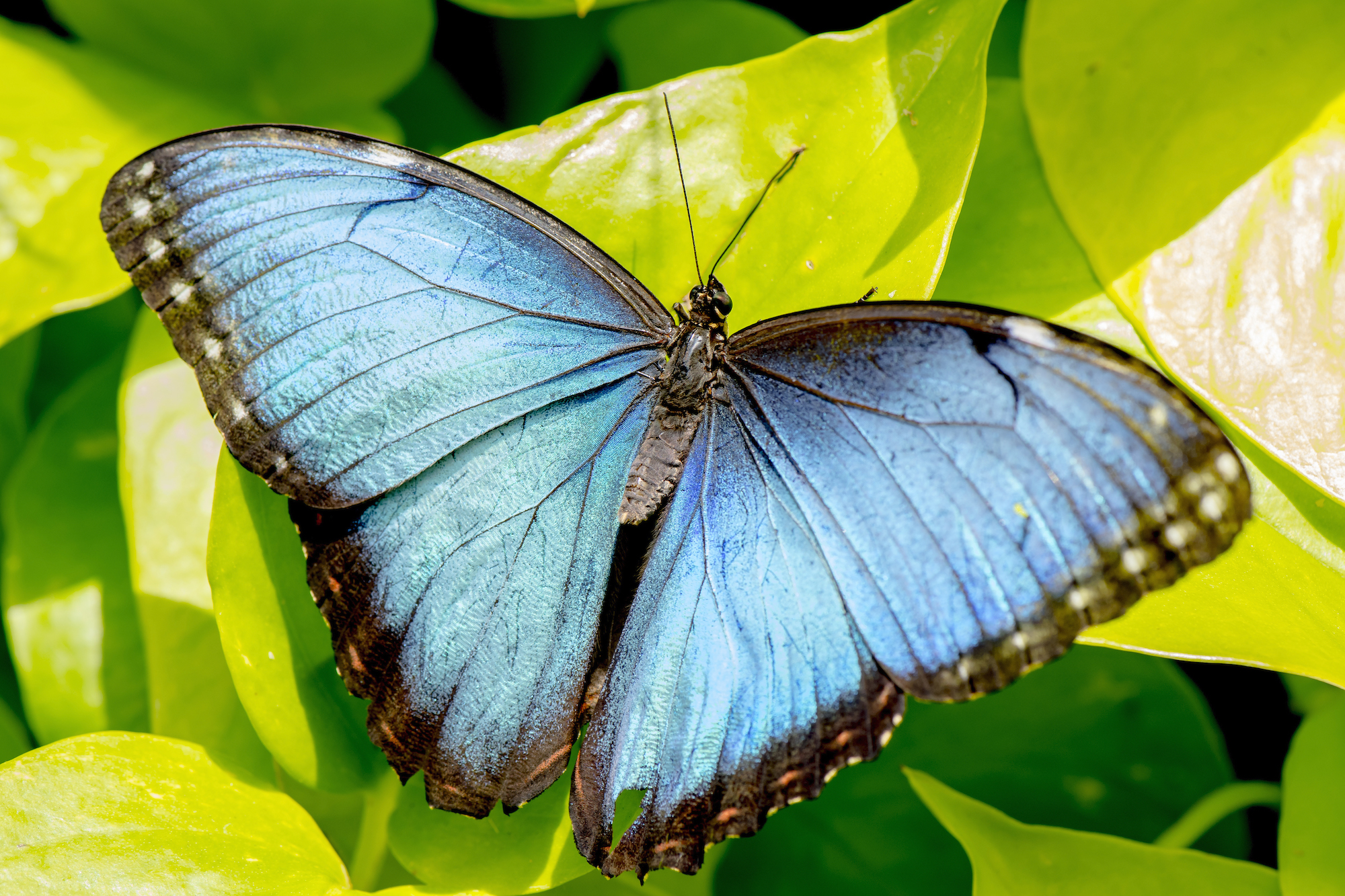 BLUE MORPHO BUTTERFLY: hides its beauty behind dull, brown closed wings