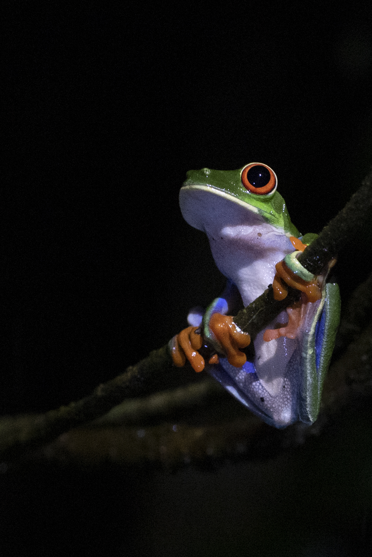 RED-EYED TREE FROG: is an arboreal hylid native to Neotropical rainforests. I spotted this handsome guy while taking a night walk through a forest near the Arenal Volcano in Costa Rica. He graciously posed just long enough for me to capture this image. PURA VIDA!!